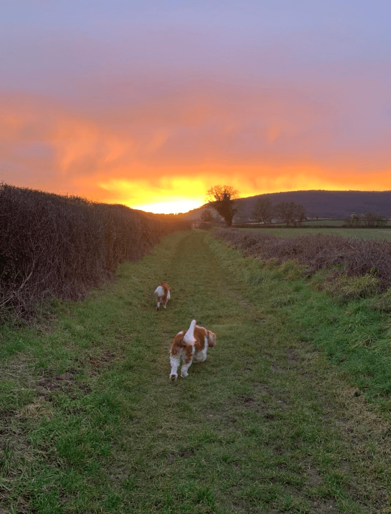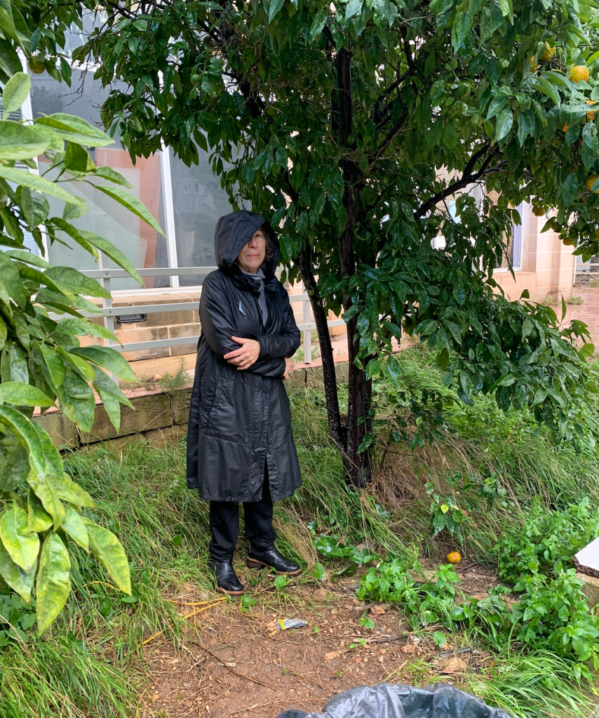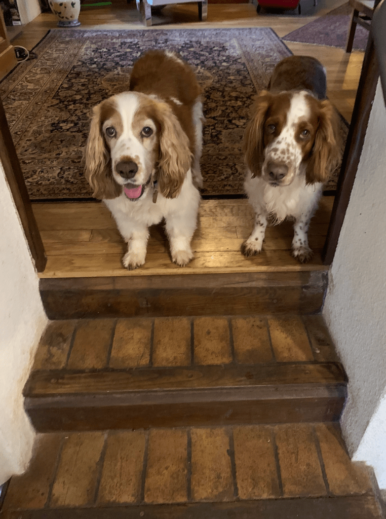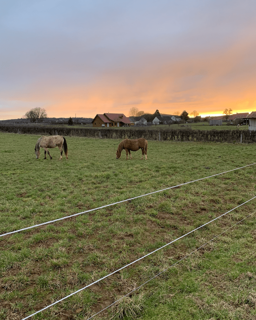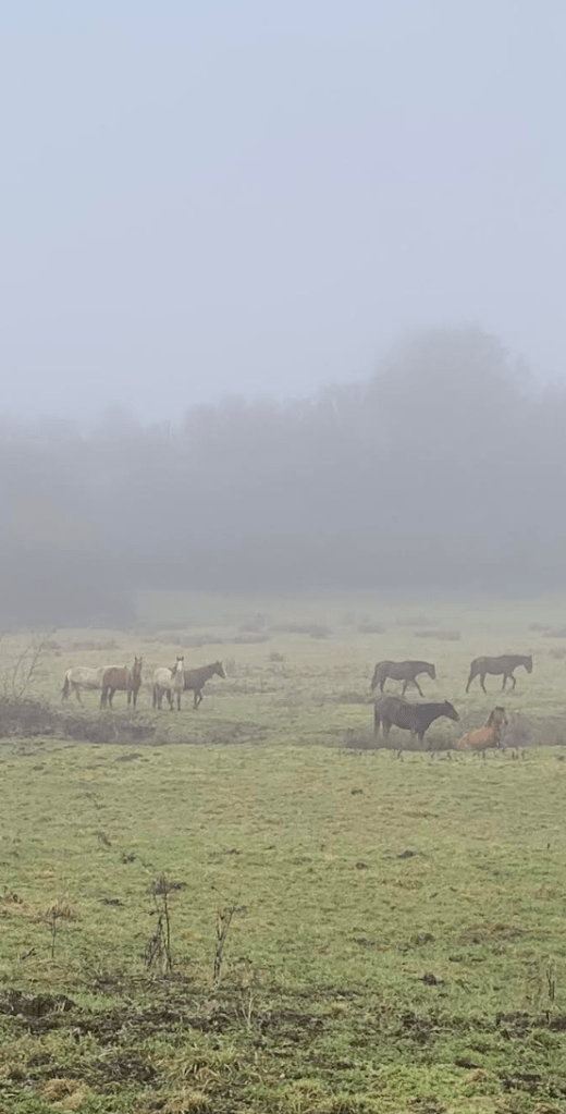 The farmhouse, not walkable to anywhere. Trapped by mud everywhere. Rained at some point each day. But, it was beautiful. Each morning, we took the dogs on muddy paths, said hello to the neighbor’s horses, chickens, (caged) rabbits, cat, dog and sheep, and sometimes to the farmer himself.