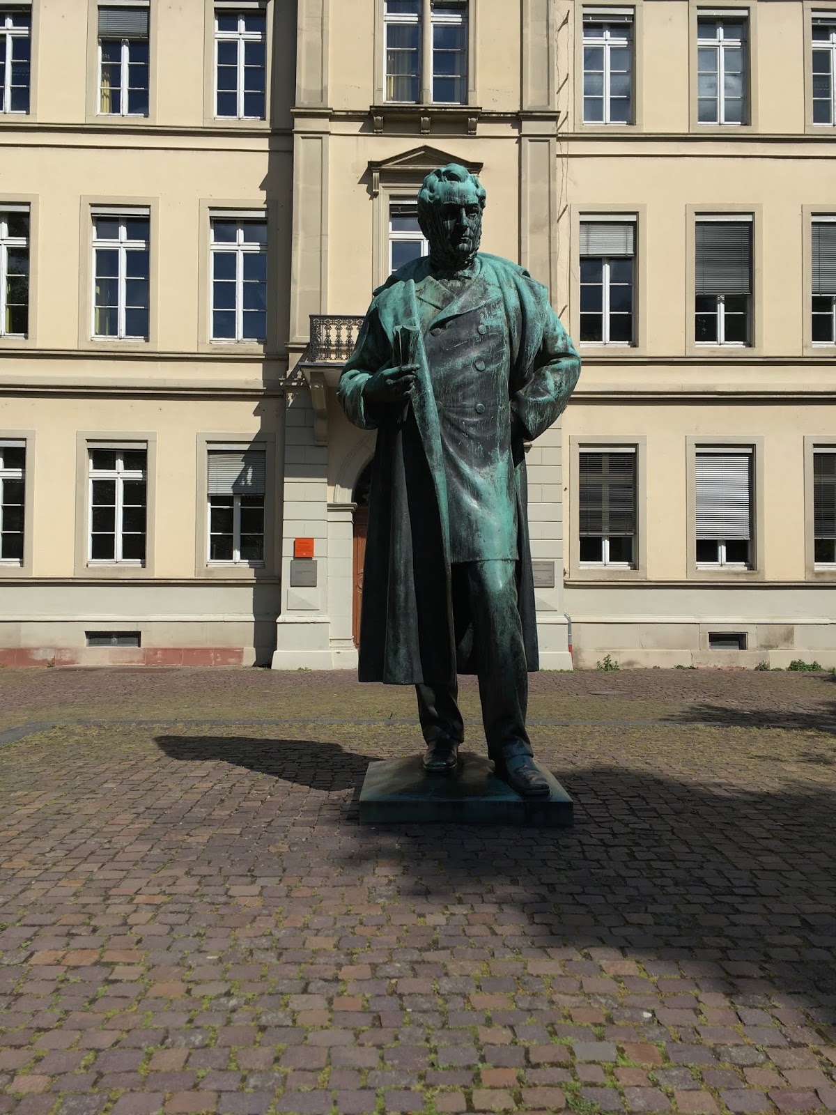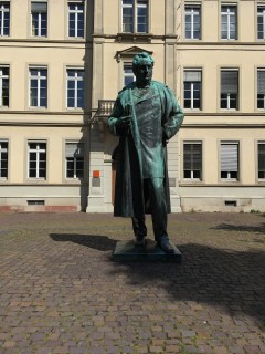 Heidelberg lies in a narrow valley with the lovely named Neckar River splitting the picturesque city like opening a ripe fruit. Lush green forested hills holding the old city of half timbered buildings, a castle ruin on the sloping hill overlooking the idyllic town, a world class university; history with every step including a lovely statue of Robert Bunsen, creator of the Bunsen burner. Almost overlooked amongst all this beauty were some particularly disturbing Stolpersteins .(https://thechosenfugue.blogspot.com/2019/01/they-do-make-you-stumble.html