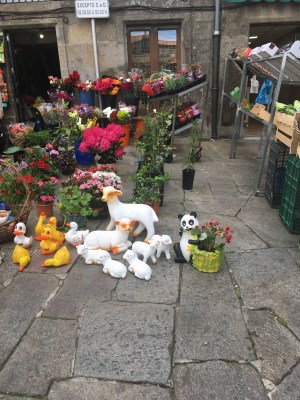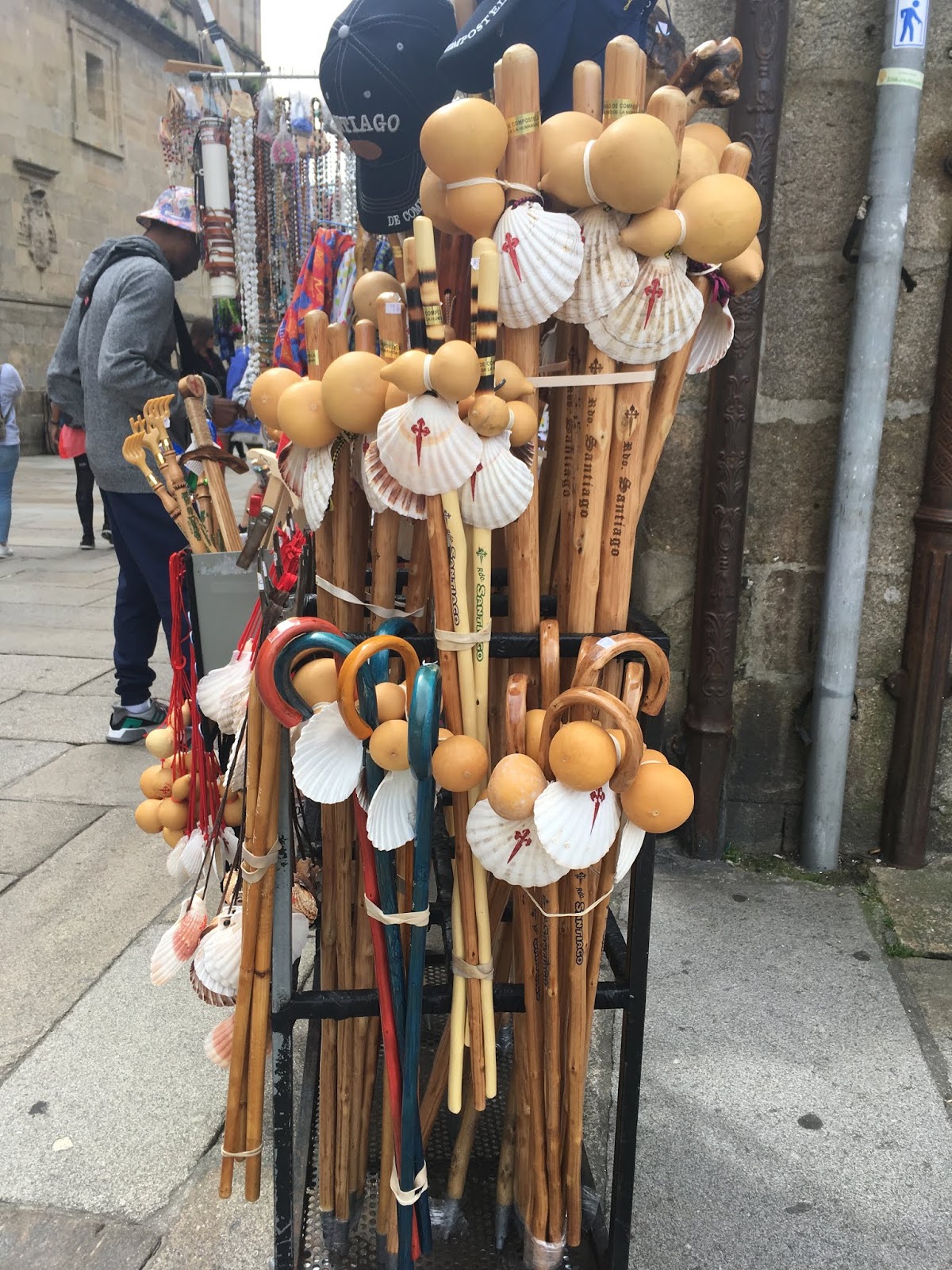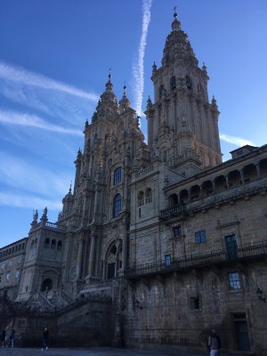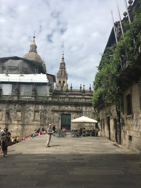 The streets are packed with pilgrims, almost all with walking sticks clanging the cobblestone sidewalks (Compostela may mean walking sticks in Spanish, but our Spanish isn’t as good as we had hoped, as everyone responded to our Spanish with perfect English. Our Spanish was better understood in Portugal).