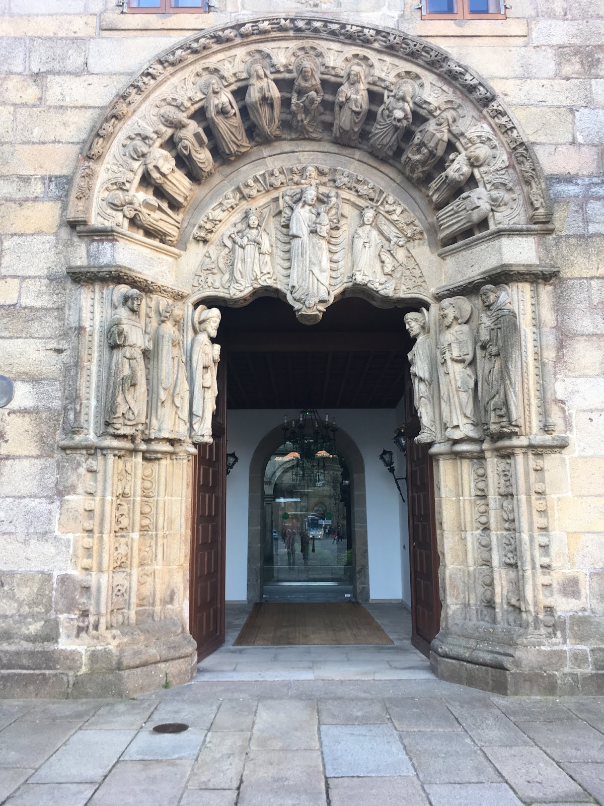 We left Saarbrucken, not via Luxembourg City but out of the smaller of Frankfurt’s two airports, Frankfurt Hahn. Took a mini-bus from Saarbrucken through acres of mustard fields. Of course, Frankfurt was surrounded by mustard. We started our Iberian Peninsula trip at the finish line-Santiago de Compostela in northwest Spain. It is the famous endpoint city of millions of pilgrims since the 814 AD. The Camino de Santiago or the Way of Saint James http://santiago-compostela.net/ is a network of hiking trails covering hundreds of miles through Portugal, Spain and France. The goal for pilgrims, once the city is reached is the Cathedral of Santiago de Compostela where the remains of apostle Saint James are kept. Once inside the traveler gives the statue of St. James a sweaty hug from behind. We entered the church walked up the altar steps allowing access to St. James from behind, then walked down the other side. Not knowing the tradition, we gave him a pat on the back “good job Jimmy, time to hit the showers.”