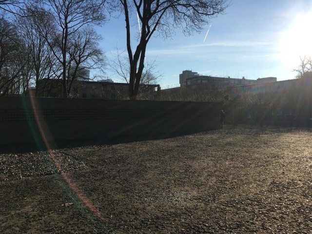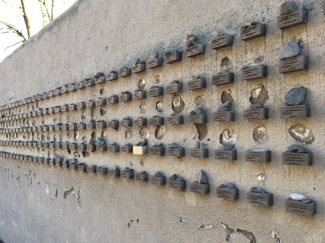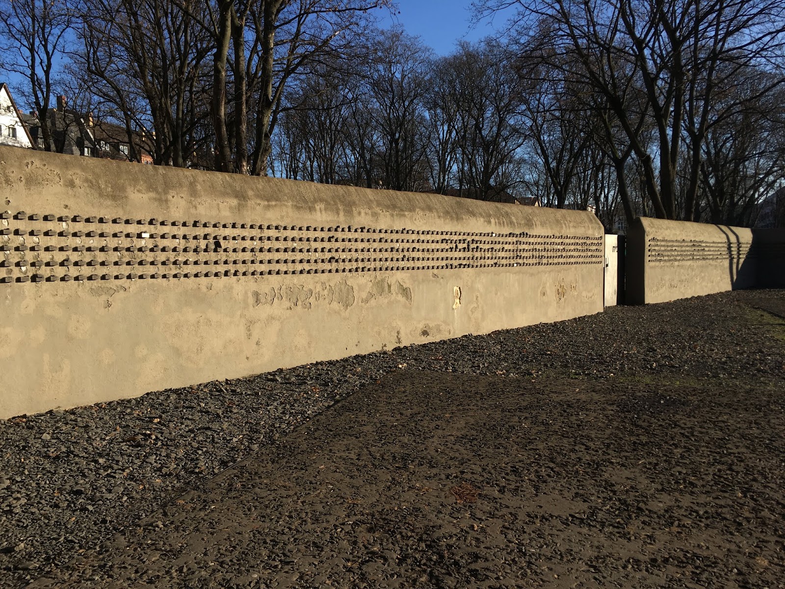 The wall went around the block surrounding what had been the Jewish cemetery. Tombstones that had been found were lined along the back walls, impossible to know which graves they belonged to.