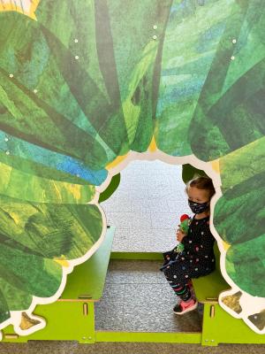 Anchored in Amherst in a sea of continental Covid, limiting our ability to travel, we have explored what we safely could, either from the car or on a trail. Locally, we started with the Eric Carle museum, by reservation, a highly anticipated trip for Ione and her hungry hungry Caterpillar, Bonnie.