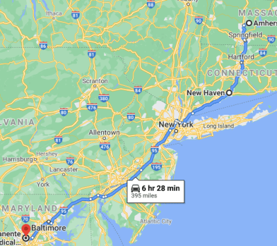 The Connecticut turnpike/highway/expressway (very confusing on the names here) wins for presentation. Beautiful overpasses in a range of styles, well placed travel plazas- nicely named and tasteful bland architecture all wrapped up with a plethora of trees, just starting to change colors. Apparently, this road, Connecticut 15, Merritt Parkway is well appreciated https://www.knowol.com/information/connecticut/merritt-parkway-bridges-pictures-history/. Considering we did not leave the car through the drive, we appreciated it. Or maybe it was appreciated because we were not able to leave the car until we rolled to our destination.