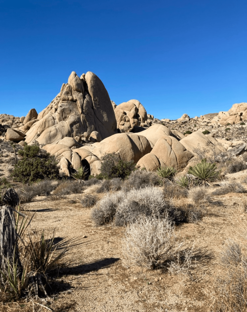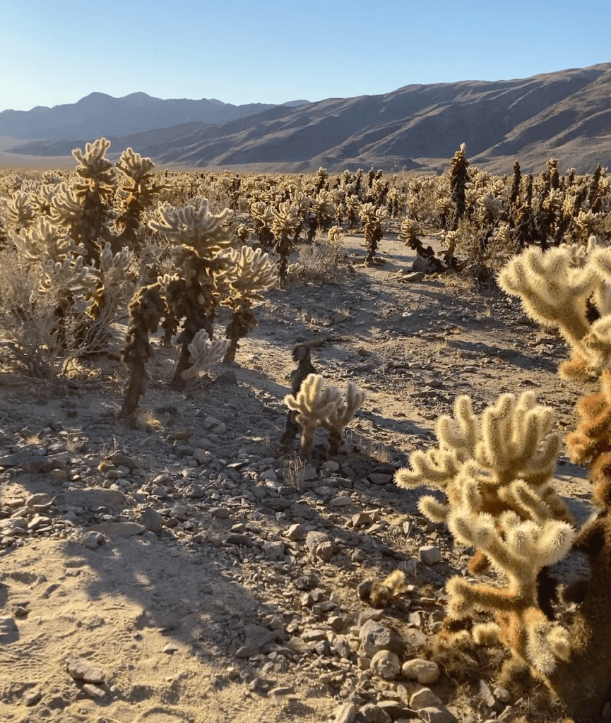 We entered into Joshua Tree National Park as the sun was setting, the horizon turning blue to pink, the mountains glowing purple. We touched base at each “no reservations needed campgrounds” but consistently struck out. We thought we spotted an empty spot, but then the Reservee showed up, pointed out the reserve placard in the pitch black night and hurried us along.