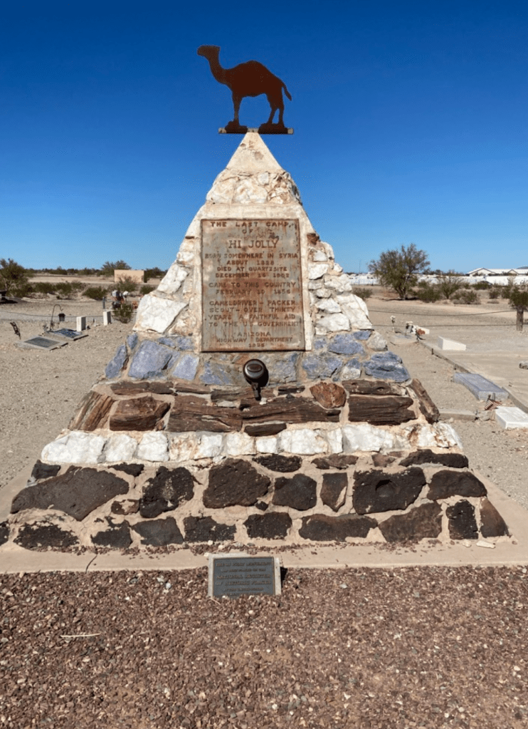 After Joshua Tree, inspired by the movie Nomadland (no, we are NOT nomads like the movie), we stopped in Quartzite, AZ, the home of the winter nomad rendezvous as well as at the grave of Hi Jolly, the most visited site in Quartzite. https://en.wikipedia.org/wiki/Hi_Jolly