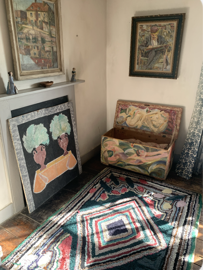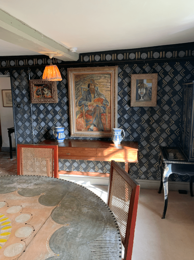 With these thoughts in mine, we went to Charleston House. The main impetus to pet sitting in the Brighton/Lewes area was due to the sisters; the Stephen sisters, Virginia Woolf and Vanessa Bell. Monks House, Virginia and Leonard Woolf’s house https://www.nationaltrust.org.uk/visit/sussex/monks-house and Charleston House https://www.charleston.org.uk/event/house-visit/, the home of artists Duncan Grant and Vanessa Bell; the catalysts of the Bloomsbury group of artists https://en.wikipedia.org/wiki/Bloomsbury_Group