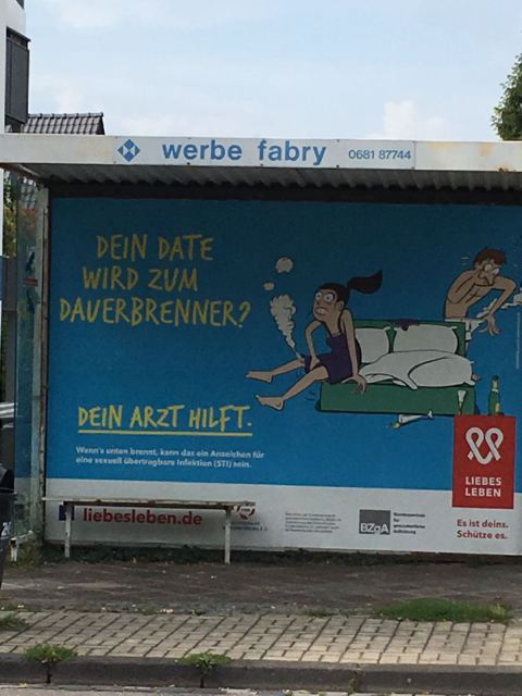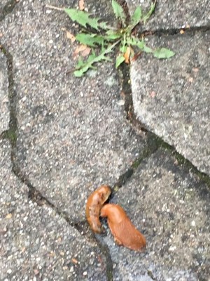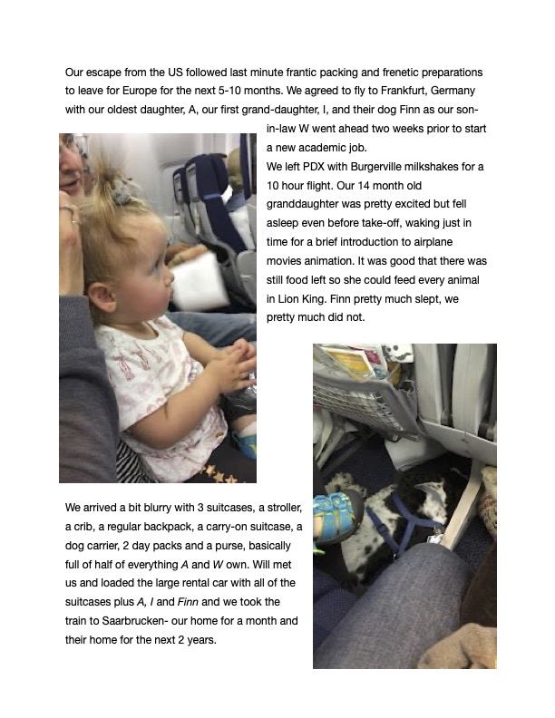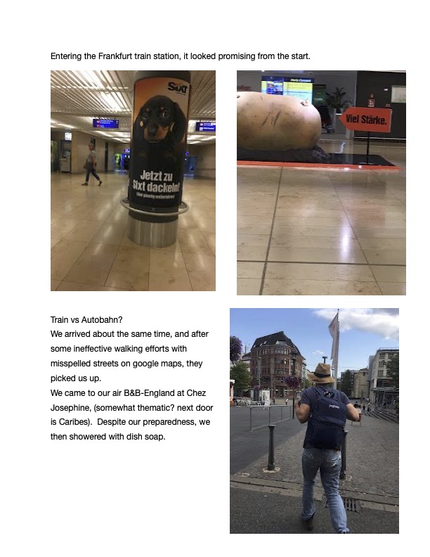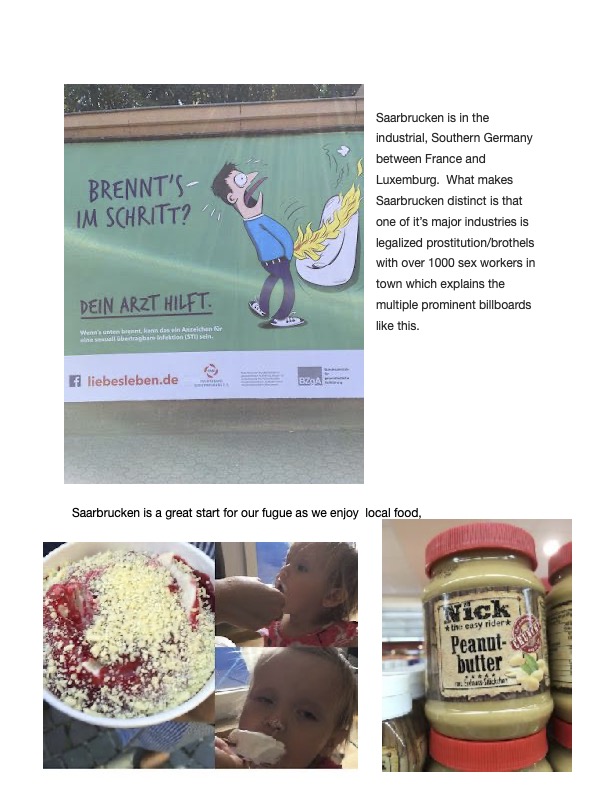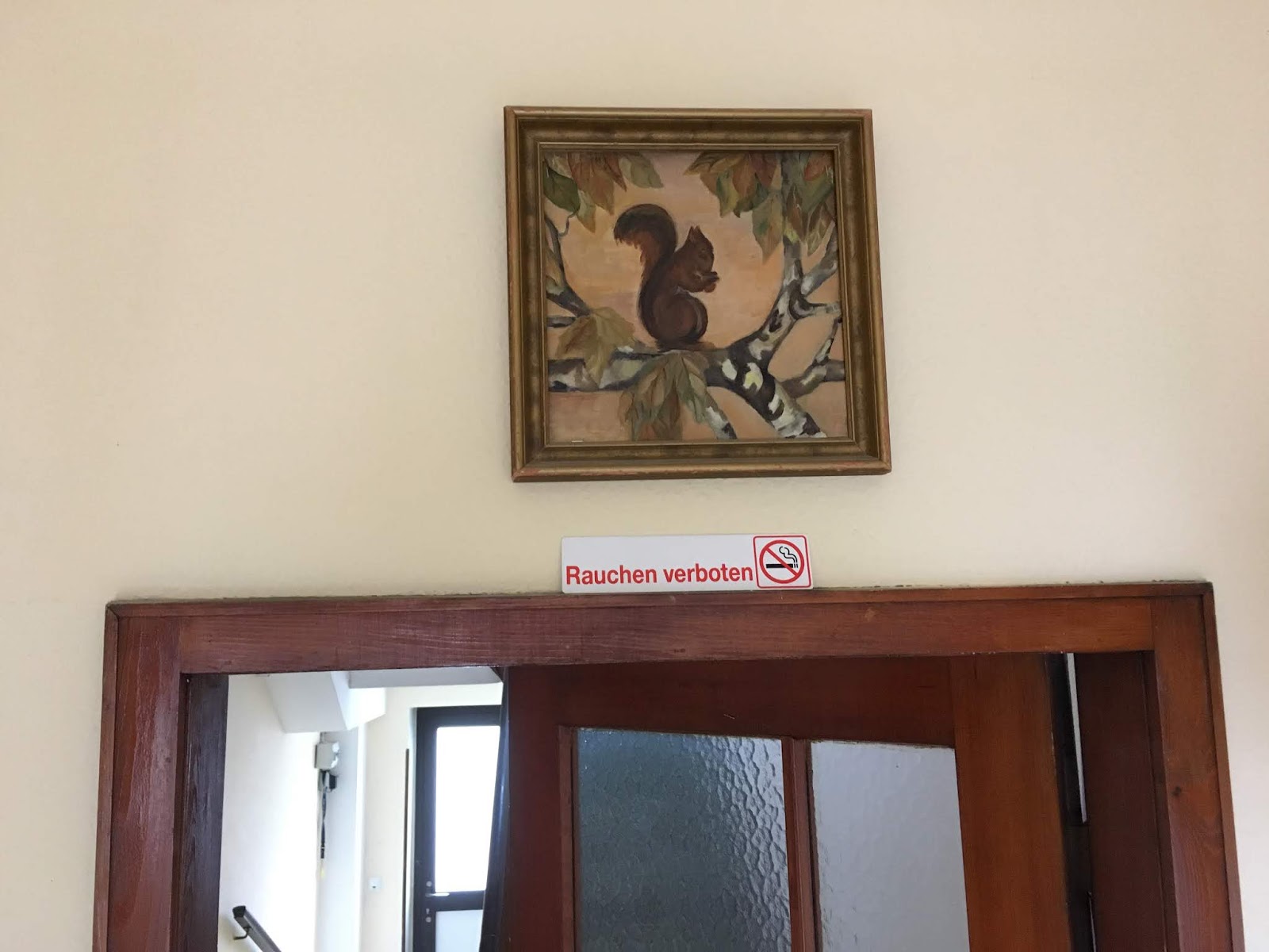 In Los Angeles, it was not unusual to see coyotes at least a few times a week, raccoons, skunks, opossums regularly and rarely deer. Unexpectedly, in more rural Eugene, Oregon we see lots of ducks (Go Ducks!), and sometimes, but rarely, raccoons and opossums. Weirdly, in Saarbrucken, an area surrounded by woods, spotting animal life has been disappointing. We’ve seen a few small bats at dusk, similar to the bats we would see in LA at that time of day. We’ve seen some Egyptian ducks, like we saw in Tel Aviv (Go Egyptian Ducks!). There are pigeons here that are bigger, prettier with longer necks (it’s an actual pigeon breed called the Saar pigeon), but they are not pervasive like most cities And, one sighting of a banana slug (Go UC Santa Cruz!). But we haven’t even seen any squirrels, except weirdly this painting in our Airbnb (that’s nuts).