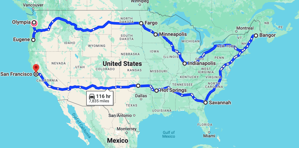 With the van gone, https://chosenfugue.wordpress.com/2022/05/15/van-gone/ we had to rent a car which was more head bumping. Nothing was available in the Boston or Providence area. We finally found a car in Springfield, MA requiring us to backtrack 2 hours west to begin our journey northeast but since Springfield is kind of in the greater Amherst/Berkshires zone we could return the car to where we would end up after Canada. After waiting 2 hours in the Enterprise parking lot for our car to arrive, we were off. Since we had already hit Maine, etc, it was straight to Canada https://chosenfugue.wordpress.com/2021/12/13/waits-motel/