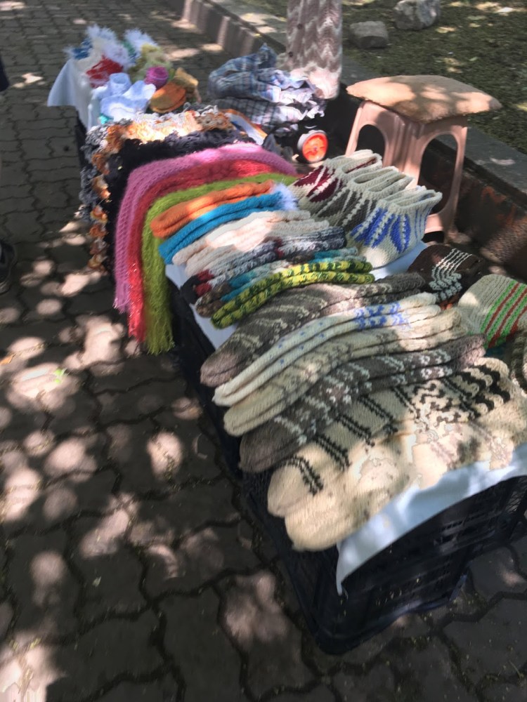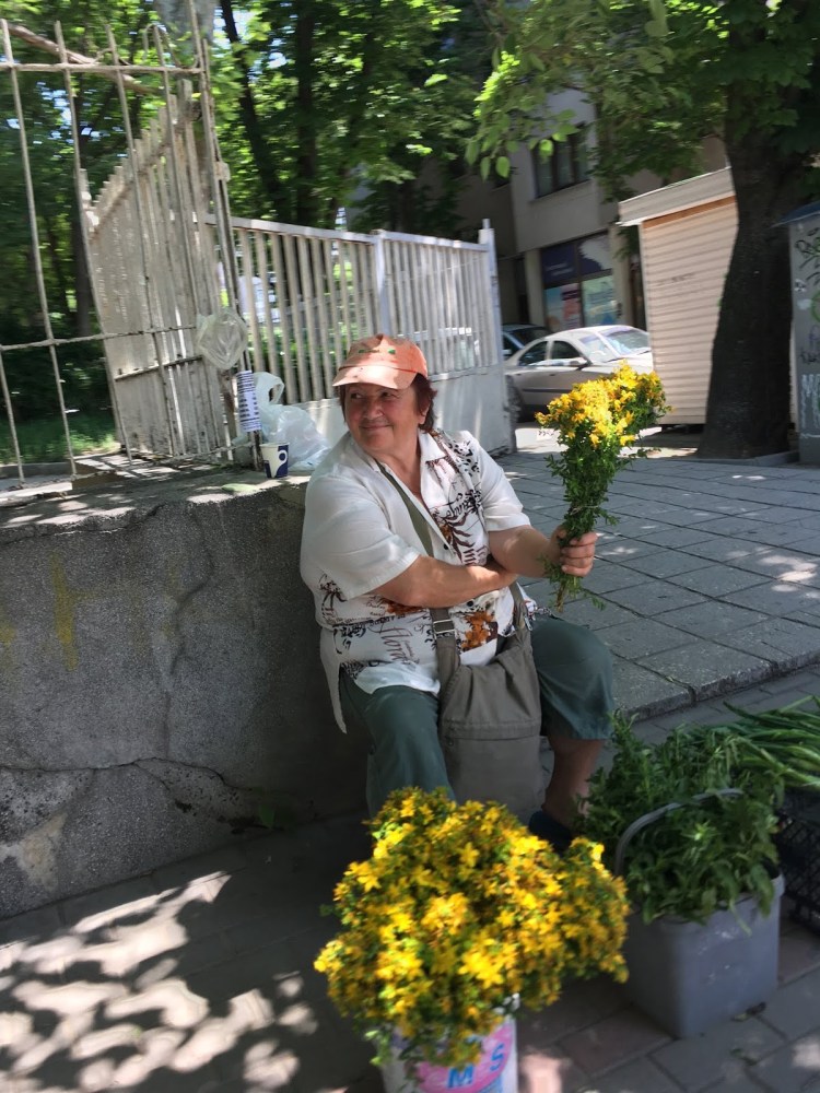 Street vendors selling wildflowers and home made goods.