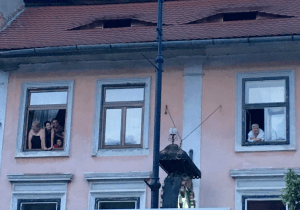 This week’s photo of topless old man looking out window contemplating his life (Burgas attraction #57)