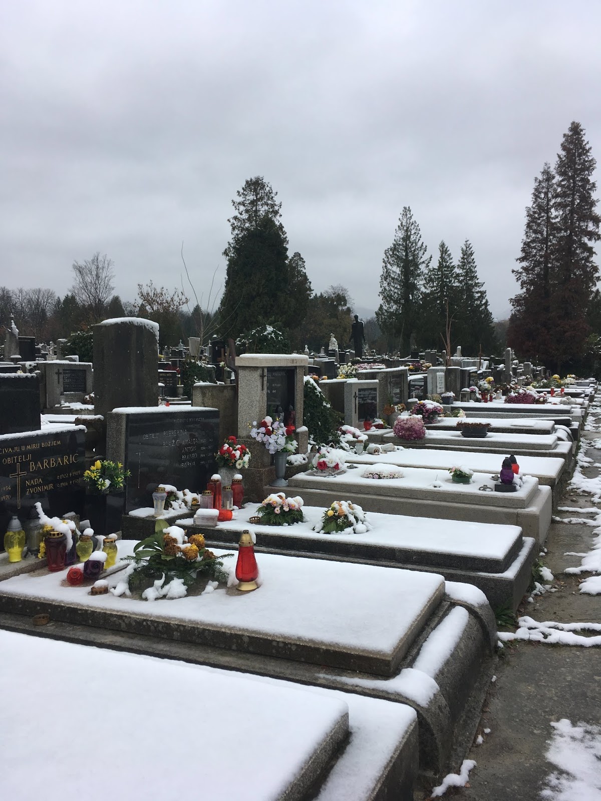 What better way to spend the snowy day then at the famous cemetery, Mirogoj Cemetery designed by Herman Bolle, as well. We walked around for nearly 2 hours absorbing the sublime beauty of the acres of buildings and grounds housing nearly 300,000.