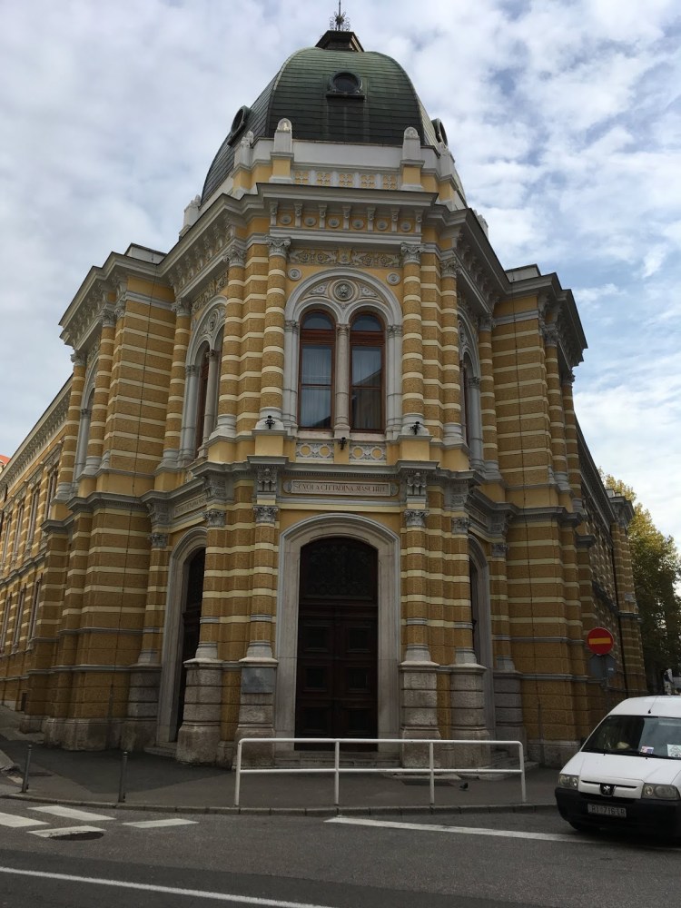 As with the Stolpersteine, this was placed in a sacred space. The plaque is in front of the now closed (in 2017) Morpurgo bookstore, which was the third oldest bookstore in Europe. We stumbled across it just after visiting the Jewish cemetery and seeing quite a few Morpurgo family member’s graves. The Morpurgos were the owners of the book store and the store (and family) were key players in the Croatian nationalism movement in the late 1800s. And then we saw a Stolpersteine for a Morpurgo outside the synagogue in Trieste, just up the coast from Split.